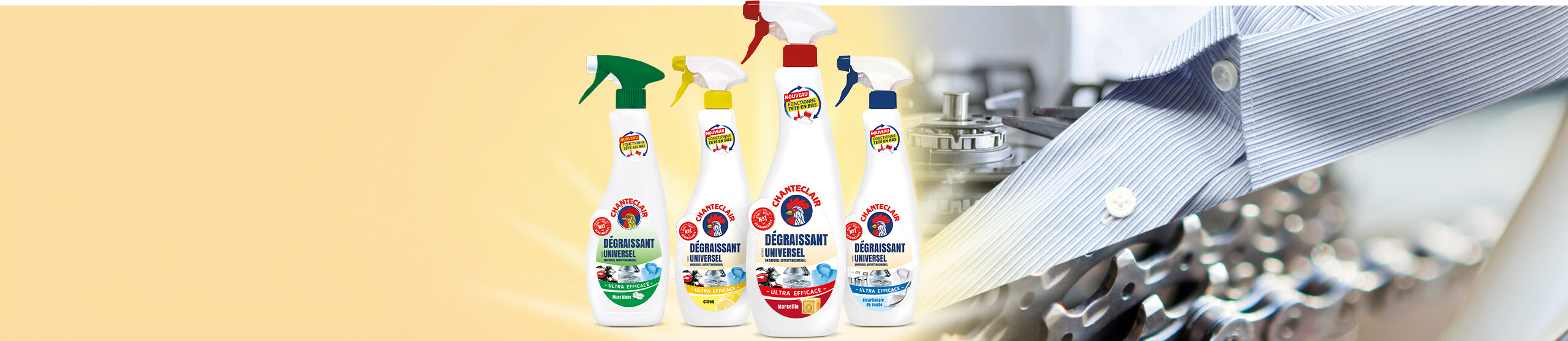 Découvrez nos dégraissants universels, idéaux sur tout, efficaces partout, et maintenant même tête en bas !
